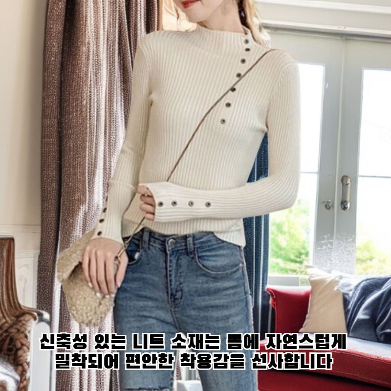 여자 폴라 보카시 니트 가을 겨울 이너 단추 스웨터 보디 니트 이너